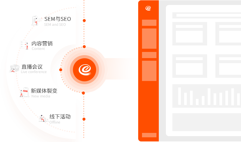 集成搜索引擎SEM、SEO、內(nèi)容營(yíng)銷(xiāo)、直播、新媒體裂變、線下活動(dòng)等營(yíng)銷(xiāo)工具,助力企業(yè)大數(shù)據(jù)獲客;