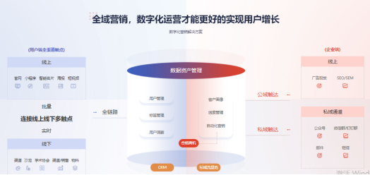 以動力無限的萬家推云平臺為例。這是一套致力于全場景數字化賦能的SaaS智能營銷系統,結合大數據+AI智能技術,可以跨平臺采集和整合各渠道營銷數據,為企業提供從公域獲客到私域運營的智能化解決方案,幫助企業建立私域流量運營矩陣,提升不同獲客渠道的轉化ROI,且無縫銜接SCRM等營銷管理軟件,真正打造全鏈路獲客、全渠道推廣、全數據監測的一站式全域營銷管理平臺,助力企業降本增效,業績飛速增長!