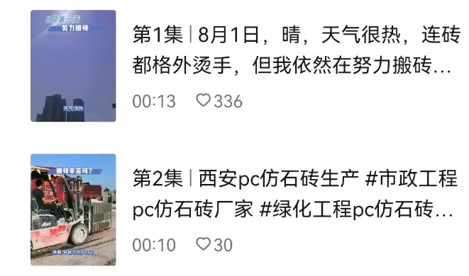 于是,由郭總提供自己用手機拍攝的上班途中、送貨路上、工地實景素材,由我們剪輯發布的《搬磚日記》開始誕生。