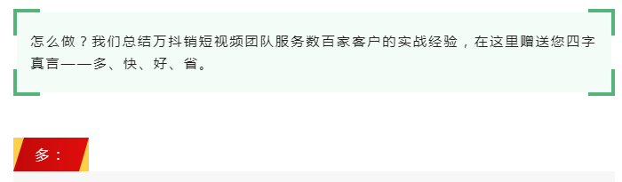 注意:核心是“多”,而不是精心打磨非要視頻如何漂亮。另外,某些賬號的運(yùn)作方式是只在一個平臺獨(dú)家發(fā)布視頻內(nèi)容,以此尋求平臺的流量扶持。但這種運(yùn)營邏輯不適合中小微企業(yè),我們就是要多平臺全渠道發(fā)布,不必追求某個平臺排他性的特殊流量傾斜。